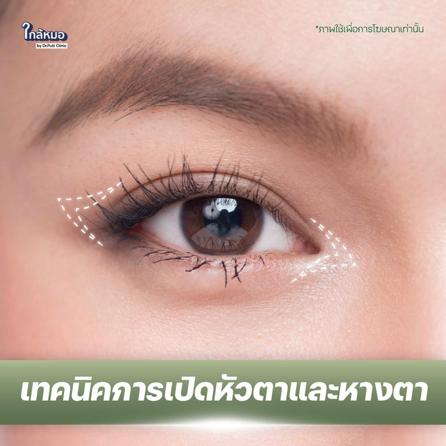 การเปิดหัวตาหรือหางตาเป็นเทคนิคที่ทำร่วมกับการทำตาสองชั้นร่วม ซึ่งเป็นการผ่าตัดตกแต่งหนังตาที่เปิดบริเวณหัวตา เพื่อให้บริเวณหัวตาดูกว้างขึ้น รูปร่างตาดูยาวขึ้น เพิ่มความโค้งมนของชั้นตาบริเวณหัวตามากขึ้น เทคนิคนี้ไม่เหมาะกับทุกคน ศัลยแพทย์จะพิจารณาว่ามีความจำเป็นมากน้อยแค่ไหน โดยแพทย์จะตกแต่งประมาณ 2 มิลลิเมตรและทำการเย็บ ทำให้แผลเล็กมาก