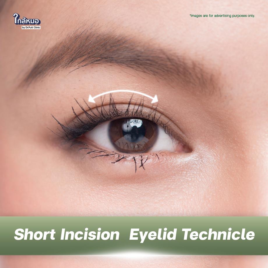 Double eyelid : this is a small-incision or short-incision technique. It involves a small incision without removing excess eyelid skin or fat, creating a sharp and natural-looking eyelid crease. After the surgery, the incision is not visible. This is suitable for people with monolids, small eyes, hidden eyelid creases, and those with thin eyelids with little skin and fat.