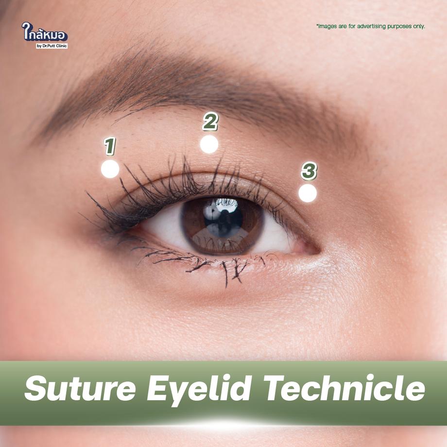 Double eyelid : This is a non-incisional double eyelid technique where the doctor uses sutures to create a crease. The doctor will place sutures at about 2-3 points on the eyelid to create a double eyelid fold. The result looks smooth, with no visible incisions. This is suitable for people with monolids, thin eyelids, and without sagging skin or excess fat.